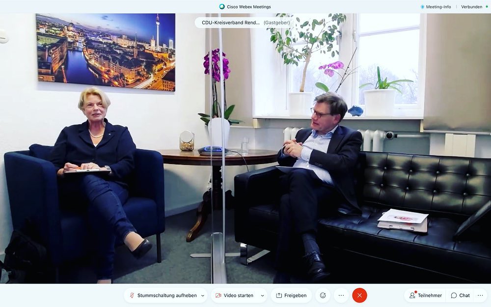 Passend zum Osterfest am nachfolgenden Wochenende stand unsere Veranstaltung „Kurze Frage an…?“ am 01. April ganz im Zeichen der christlichen Kirche: Zu Gast war die Präses der Landessynode der evangelischen Nordkirche Ulrike Hillmann aus Segeberg. Ehe sie sich aber mit unserem Kreisvorsitzenden und Bundestagsabgeordneten Dr. Johann Wadephul über die Arbeit der Landessynode, die aktuelle Fastenzeit und einige weiteren Themen austauschte, hielt der Kreisvorsitzende der Senioren Union und ehemalige Pastor Dr. Heinz Zimmermann-Stock ein geistliches Grußwort. Er ging auf die Bedeutung vom heutigen Gründonnerstag ein und welche Lehren wir daraus auch für unseren Umgang mit der Corona-Pandemie ziehen können.