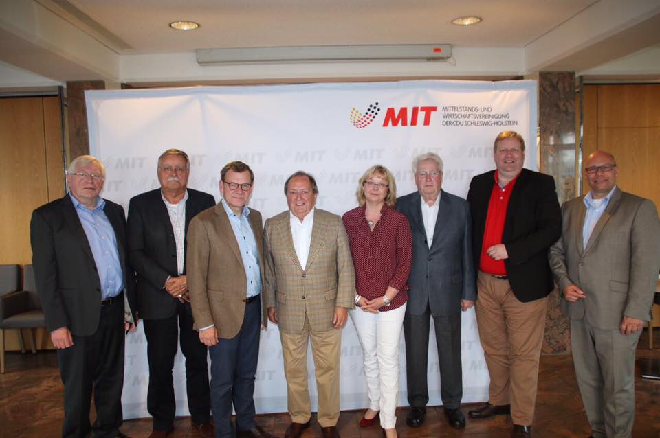 Zu Gast waren der Landesvorsitzende der MIT Schleswig-Holstein Stefan Lange und unser CDU-Ehrenvorsitzender Otto Bernhardt. Johann Wadephul (seit April 2017 stellvertretender MIT-Landesvorsitzender) forderte in seinem Grußwort, dass eine Menge an mittelstandsfreundlicher Politik in Schleswig-Holstein zu tun ist: „In der Verkehrsinfrastruktur muss es endlich ein Vorankommen geben. Hier kann man für den Tourismus schon beim Radwegebau anfangen. Alle die mittelstandsfreundlich denken, sind bei uns in der CDU und MIT gut aufgehoben.“ Stefan Lange fügte hinzu, dass eine Mitgliedschaft in der CDU natürlich immer gut, aber nicht zwingend Voraussetzung ist, um sich in der MIT zu engagieren und Mitglied zu werden.