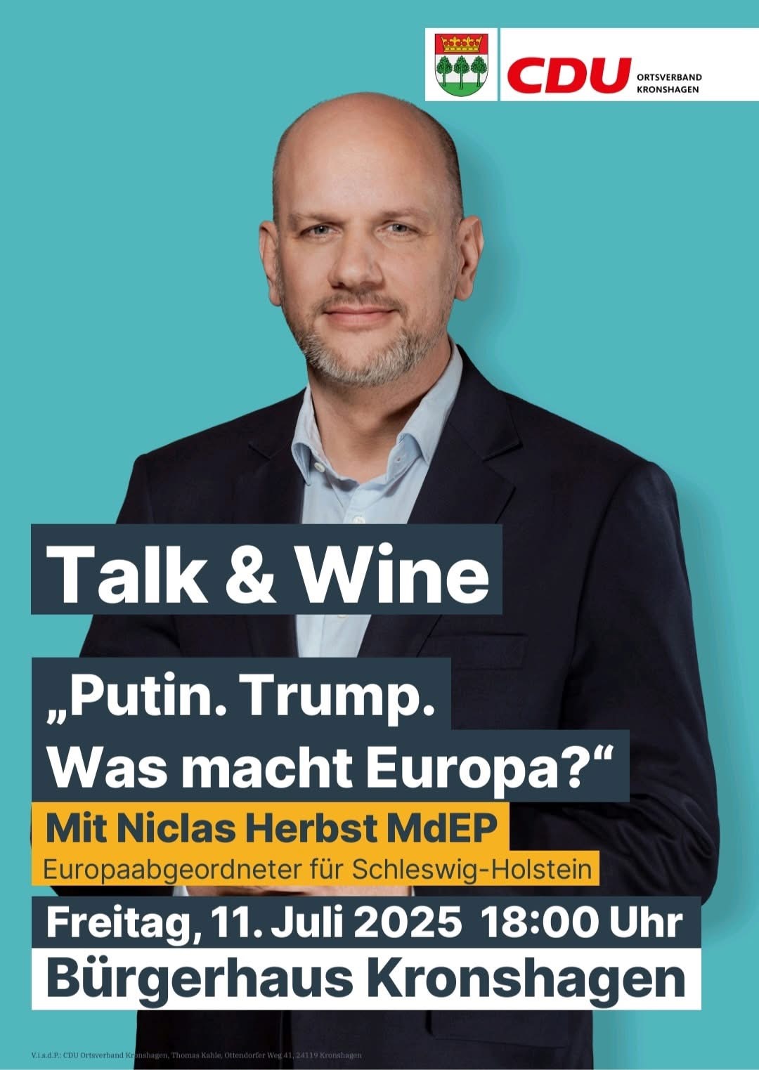 Die CDU Kronshagen lädt zusammen mit dem Kieler CDU-Ortsverband Mitte herzlich ein